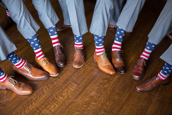 Or wear socks that tie into your theme, like these patriotic socks from a Fourth of July wedding!